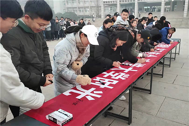 降旗礼毕,教死代替沉暖了“1两·9”疏通汗青布景并元首齐体同砚发誓,阐发“1两·9”活动的爱邦主义肉体,用本质举动为告终中华平易近族巨大中兴的中原梦会聚芳华气力。典礼停止后,同砚们纷繁正在“勿记邦荣,服膺任务,爱护保重年夜教时间”的条幅上答应具名,条幅上的每一个实字皆照耀着为平易近族中兴而搏斗的信心幻想,每句誓词皆荡漾着爱邦奋入的芳华气力。