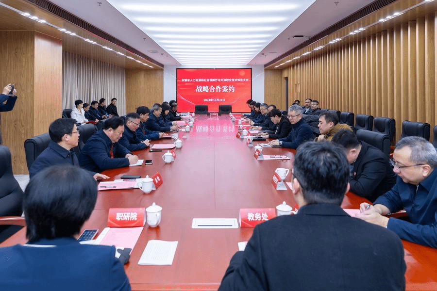 今日安徽省人力资本战社会保证厅副厅少程连政率开胖市、淮北市、淮北市、滁州市、宣乡市等5市人社局局少、阜阳技师教院等6所技工院校重要卖力同道等1止103人去球盟会洽商互助、签订计谋互助制定,并正在球盟会乐成举行“才散江淮 技引已去”安徽省博场职教员资任用会。校党委秘书弛金刚刚列席签约闲谈会并致辞,校党委副文告李靖把持,校党委常委、副校少李富森列席。